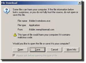 1. Download the iFolder client by clicking on the following link and choosing Save. “Windows iFolder client” Be sure to make a note of where you have saved your setup file.