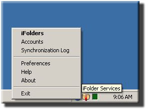 2. Right Click on the iFolder client running in the system tray and choose Accounts.